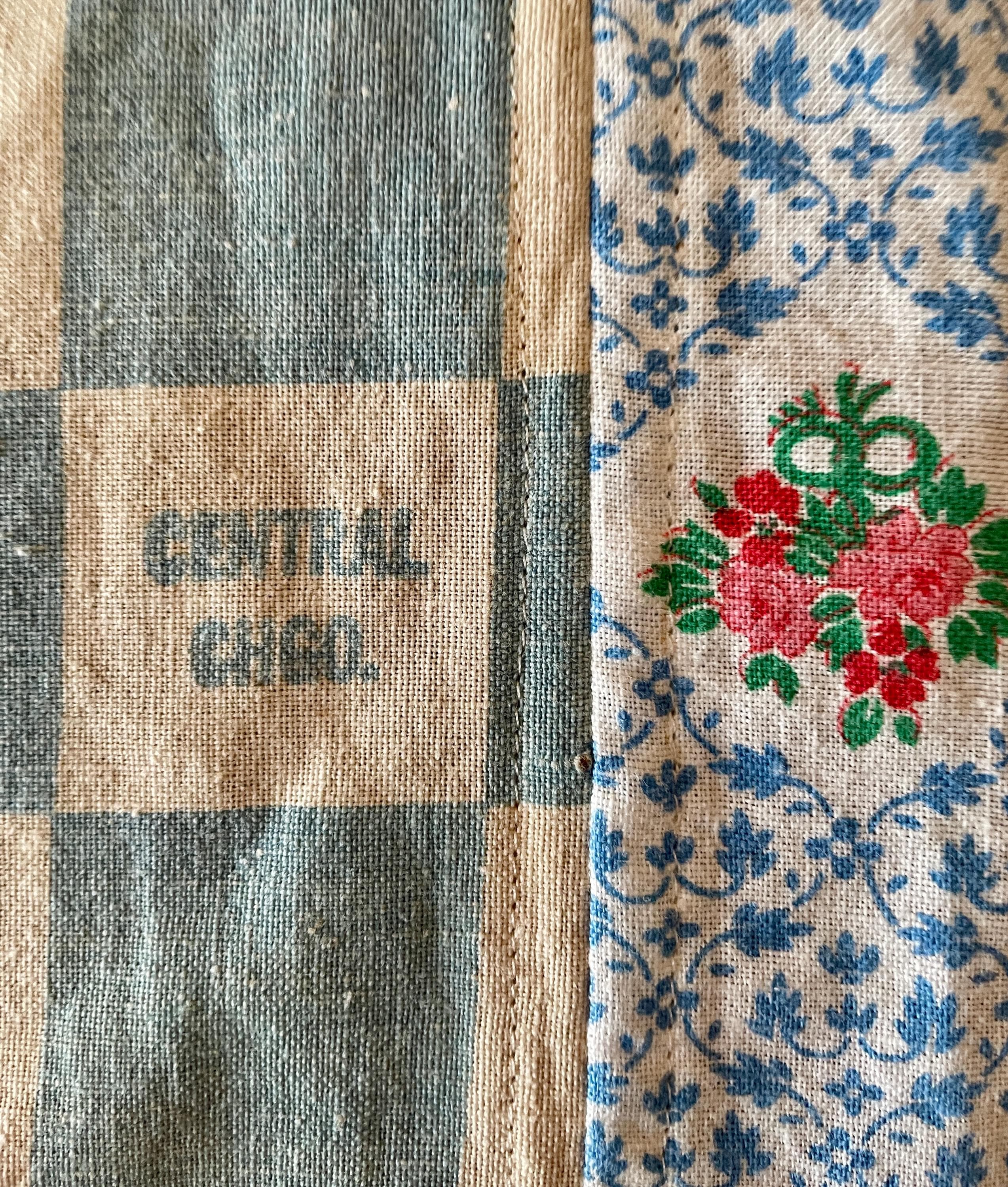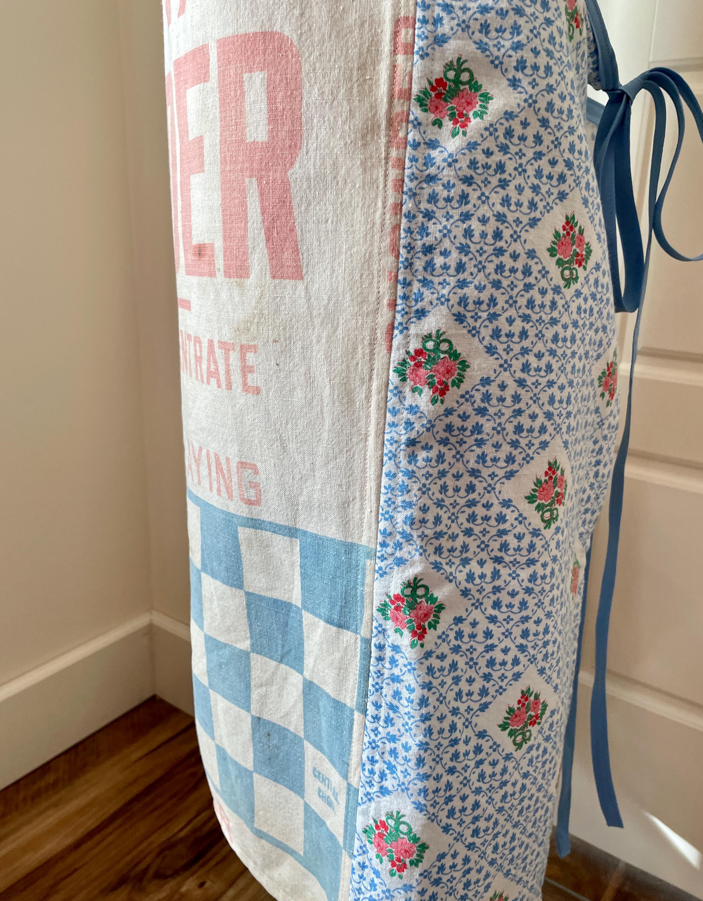 * Please keep in mind this apron was created from an authentic vintage cloth sack. Photos show the design and print darker than in actuality. While the apron is described as accurately as possible, due to the vintage quality there may be age marks not noted specifically. Also, finding some or many seeds or feed pieces caught in the fabric is quite common. The bags have been washed at least once and many seed/feed pieces have already been removed, but some may remain.