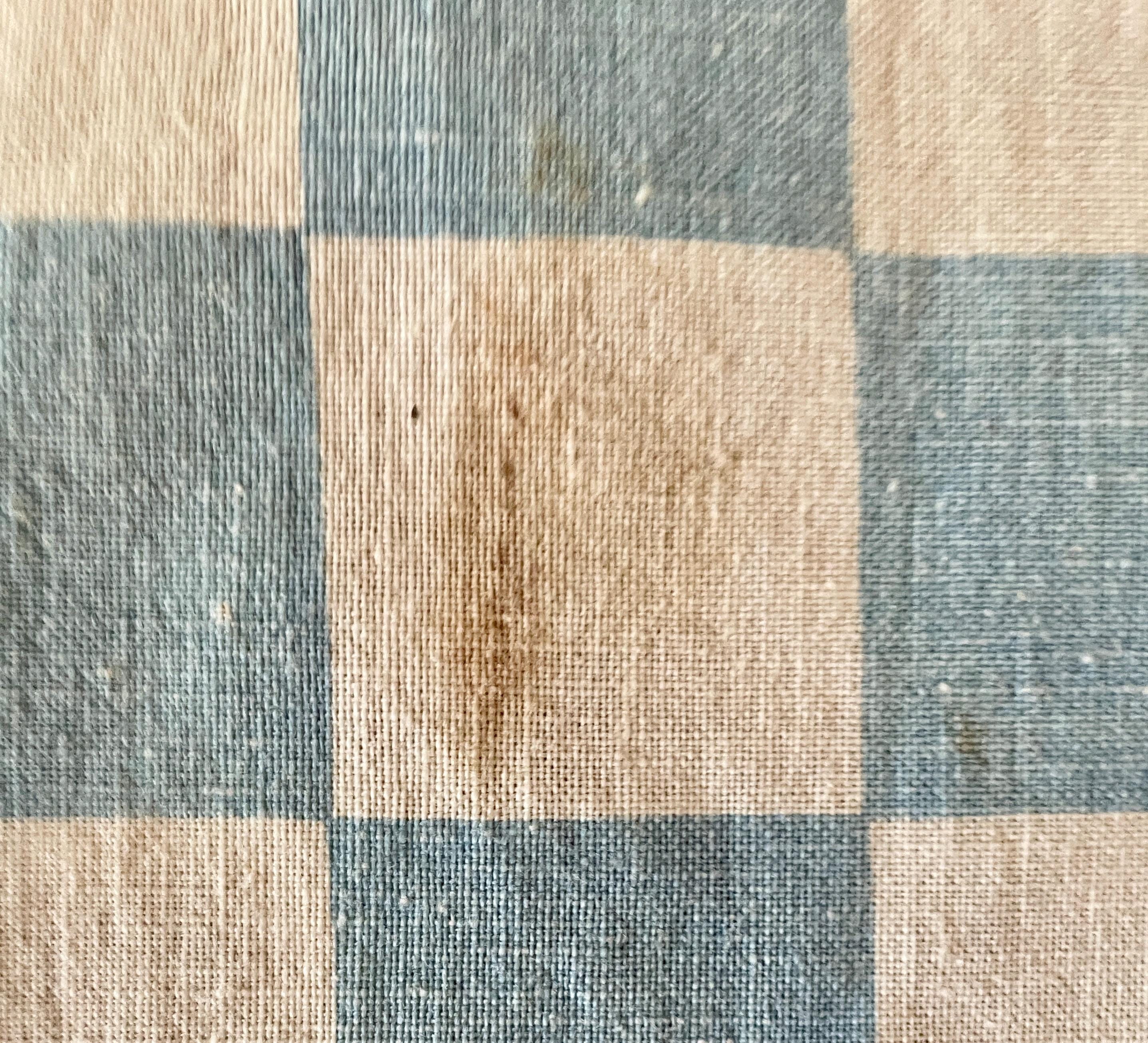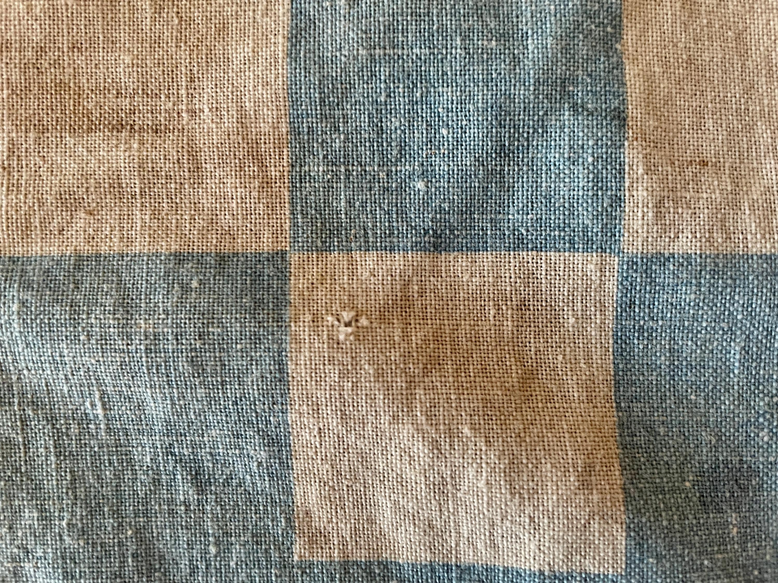 Cold water wash and line dry are recommended to prevent fading and shrinking. Warm or hot water will fade or even remove the design and wording. The apron does have a few issues, including general stains as are typical of this age of sack, as well as some darker spots here and there. Please consider all of these factors before purchase.