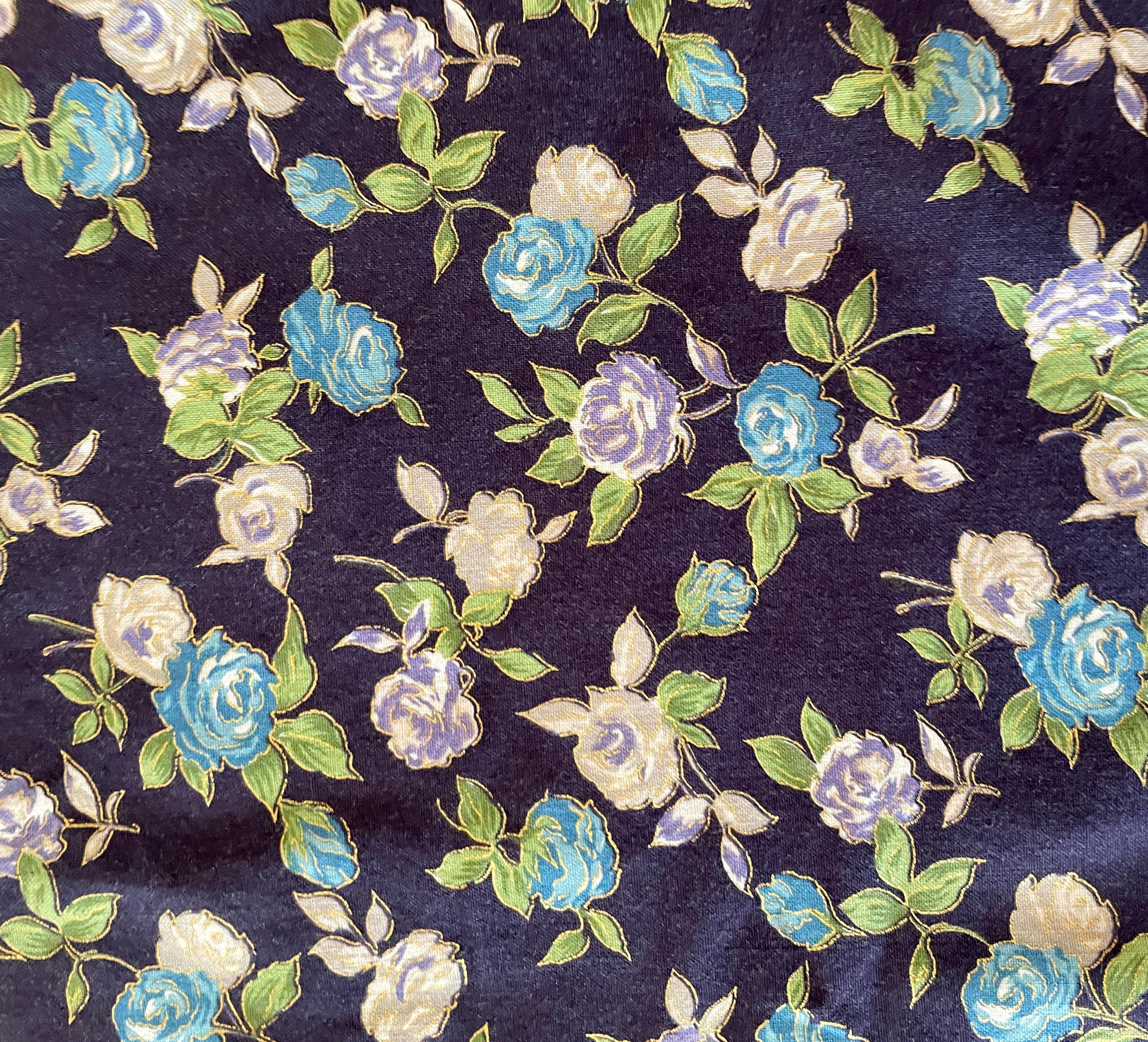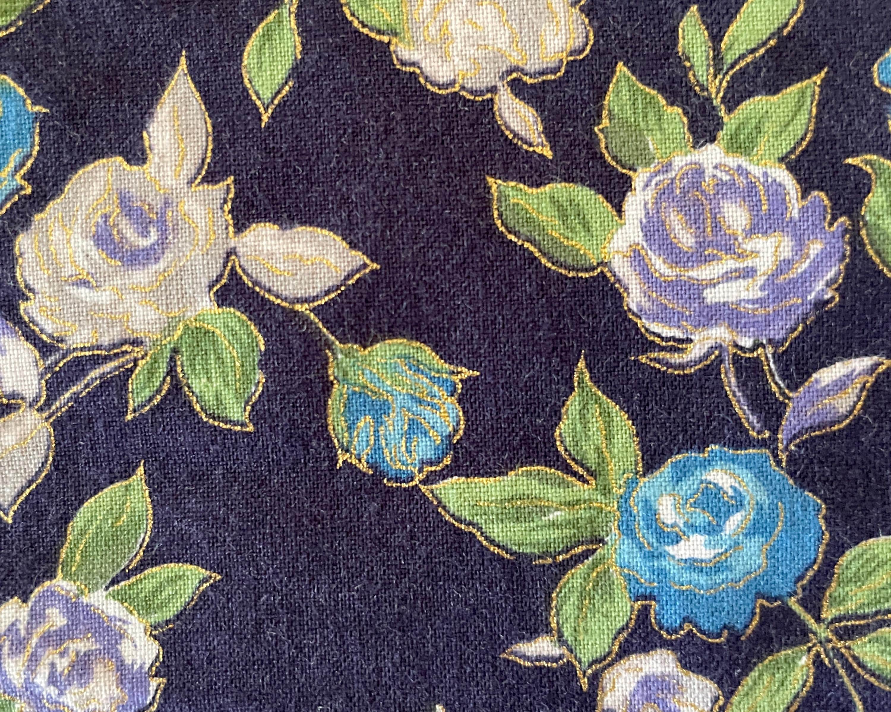 Lavender and turquoise flowers stand out on the navy blue background of this beautiful plus size apron.